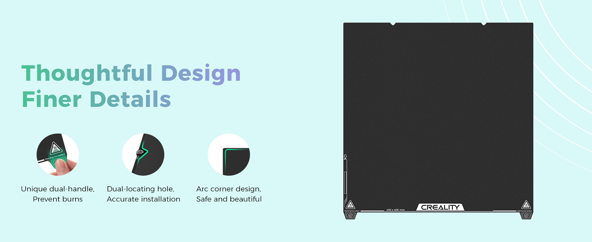 تفاوت اصلی این صفحه در سطح آن است. پوشش این پلتفرم از "ذرات رزین اپوکسی" با کیفیت بالا تشکیل شده که دارای بافت زبر و سندبلاست شده (Sandblasted Texture) است. این بافت میکروسکوپی نه تنها چسبندگی فیلامنت را به شدت افزایش میدهد، بلکه مقاومت حرارتی و فیزیکی بسیار بالایی دارد. سطح صفحه در برابر خراشیدگی ناشی از نازل و کاردک مقاوم بوده و برخلاف برچسبهای معمولی، طول عمر بسیار بالایی دارد. این یعنی یک سطح چاپ دائمی و حرفهای.
