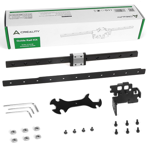- مدلهای سازگار: طراحی اختصاصی فقط برای Creality Ender-3 V3 SE این کیت شامل ریل، واگن (Blcok) و براکتهای اتصال دهنده فلزی میباشد که پکیجی کامل برای ارتقای محور دستگاه شماست.